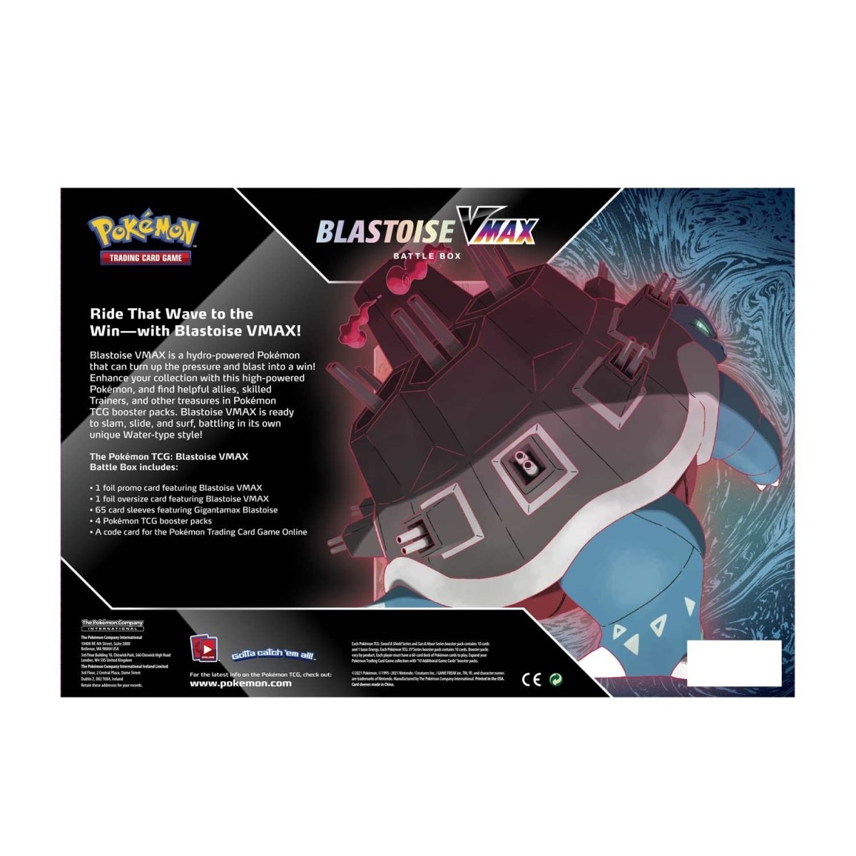 The Pokémon TCG: Blastoise VMAX Battle Box includes: